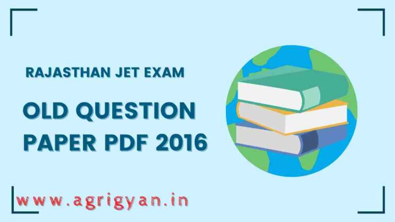 इस पोस्ट में राजस्थान JET परीक्षा paper 2016 को Update किया है , जिसमे एग्रीकल्चर subject के Questions and Answer दिये गए है पूरा paper पढ़ने के लिए आप PDF Download कर सकते है ।